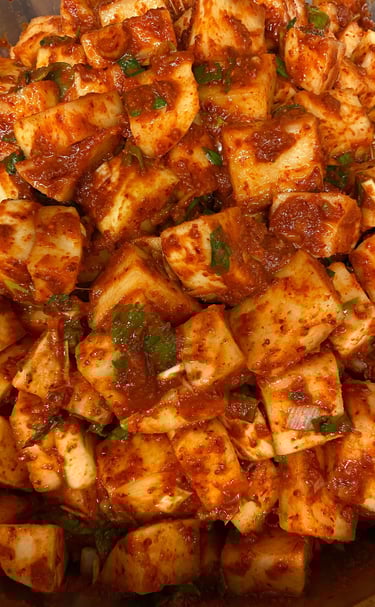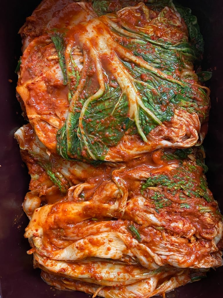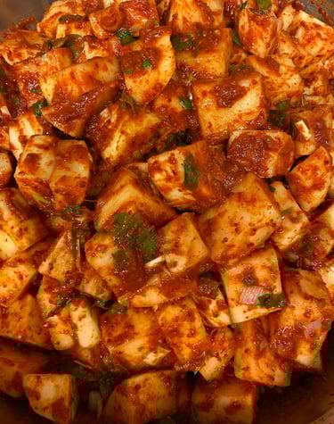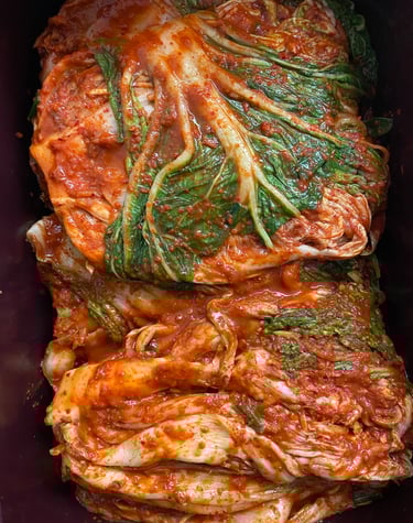 Experience our handcrafted kimchi, meticulously prepared in small batches using crisp, locally sourced napa cabbage and a vibrant blend of authentic Korean spices. Each batch is carefully fermented over several days upto months to achieve the perfect balance of tangy, spicy, and umami flavors, resulting in a probiotic-rich delicacy that embodies centuries of Korean culinary tradition. Our kimchi is not only a bold and flavorful accompaniment to any meal, but also a testament to our commitment to quality, heritage, and the art of fermentation-offering a true taste of Korea’s most iconic dish, lovingly crafted and served fresh to your table.